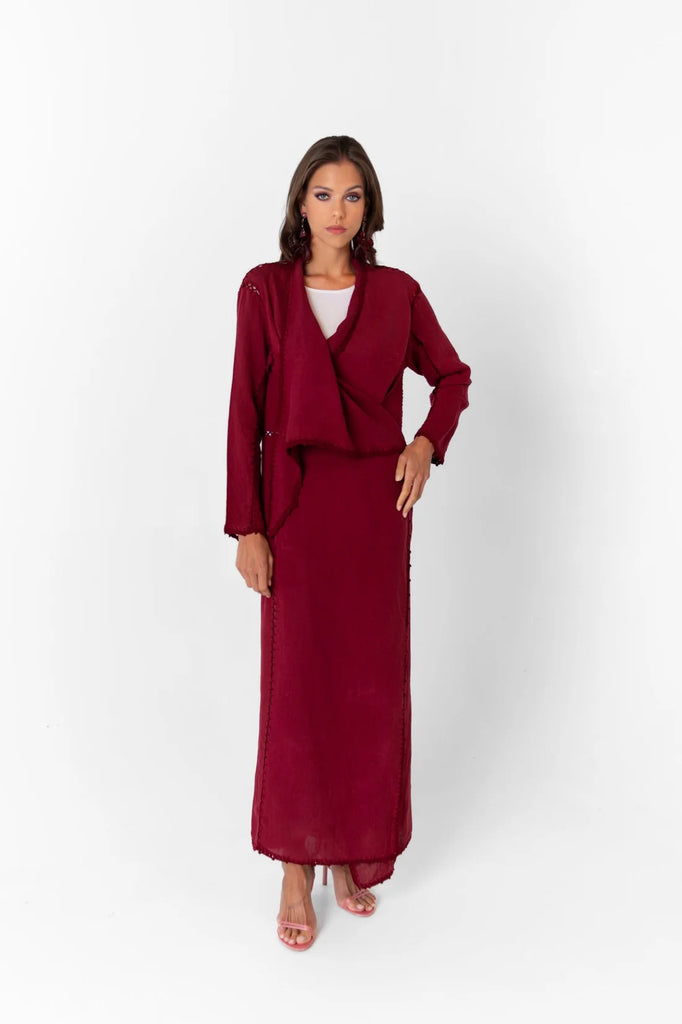 Burgundy Linen Blazer Abaya