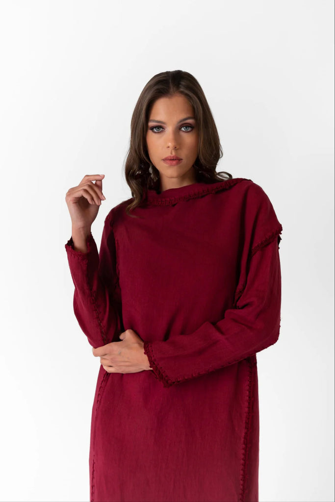 Basma Burgundy Linen Abaya