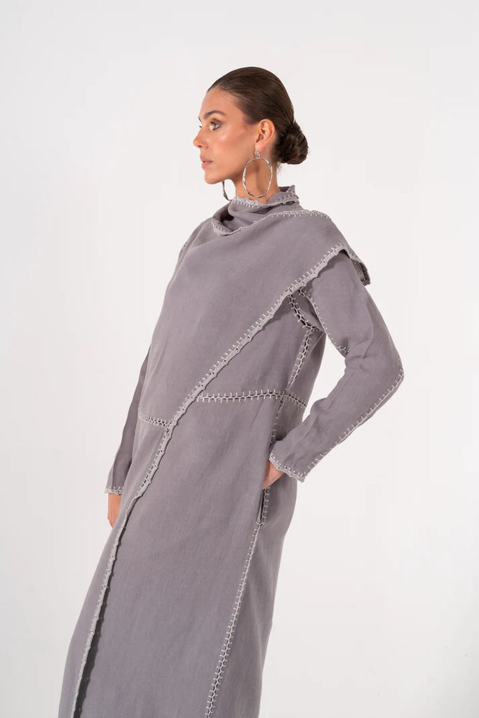 Basma Grey Linen Abaya